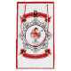 Vackert, vintage bild av en glass sundae. Körd med chokladfam sirap, fylld med ett rött körsbär och kapslad i ett söt, irriderent kristallglas söndag. Omgiven av en rund, laktusande, svart, glatt se ram. Framad med röda banderoller och guld. Redo att anpassa sig. Ett sofistikerat sundae-utseende och ett nytt tillägg till en av mina vintagar glass stilar i min vintage glass-samling. Perfekt för en glass social eller älskare av glass.