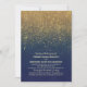 Inbjudningar till glamor och vintage bröllop i guld med bakgrund av färg i flottan. — All design inslag skapat av Jinaiji