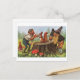 Detta är en återgivning av ett vykort för vintage som visar tre gnomer skapar vänner och skakar händer med en ekorre, som sitter på en träd-stump omgiven av svampar/toadstooler.