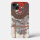 Vintagen illustrerar God jul vintersäsongslandskapets utformning i helgdag. En snowscape-scen med en vy av snönära träd i skogen och ett hus i avstånd genom ett nio fönsterfönster med en utandning av gräs träd med en röd båge hängande på den. En arkitektonisk inslag.