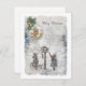 Detta är en vintage bild av barn som matar fåglarna vid en fågelmatare på vintern med snö som täckmantel och även en julklar prydnad med fåglar inuti. Den här charmerande designen är perfekten för att skicka ut hälsning vid jul. Anpassadets textmall på baksidan. Denna utformning är underbar för dem som är natur- och fågelskådare, eftersom den har en underbar outdoorsi, årgång julvibe.