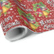 Färgglatt julklappspapper med en vintage-ritning av färgglada julklockor i rött, guld och blått med en gammaldags, handskriven "God Jul" i rött och grönt. Kan beställas med anpassade rullängder.