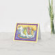 Vintagen illustrerar julbilden med en sovande katt med sockor hängande på ryggen och möss gömmande i strumporna.