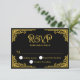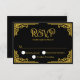 A matching RSVP card designed in the Cinematic Vintage style and gold and black with subtle filmgrain/dust overlay. Completes your editorial wedding suite with a cohesive, nostalgic look. Fully editable. The card has a decorative frame and vintage font in faux gold.