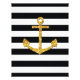Golden Anchor mot en svart och vit strimlad bakgrund.