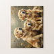 This Vintage Three Golden Retrievers Print Jigsaw Puzzle celebrates the timeless charm of one of America’s most beloved dog breeds. Three golden retrievers sit proudly in a classic portrait‑style composition, their soft coats rendered in warm honey tones and gentle brushwork that evokes traditional oil paintings. The vintage aesthetic—complete with muted background hues, subtle aging textures, and an old‑world photographic feel—creates a heartwarming scene filled with loyalty, companionship, and rustic elegance.