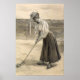 Kattunge på första teatern av konstnären W. T. (William Thomas) Smedley. Publicerad i en tidskrift 1897. Underbar syn på kvinnligt redo till slå golf boll. Snygg vintage kvinnokonst i golf mode.