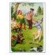 En vintageillustration av en grupp av katter på golfbanan, den iklädda golfdresset och ha tiden av deras liv. En katt tar en gunga med hans golfklubb som knackar över caddyen och skrämmer av en hund som går spring från platsen. Kortet är tom insida för ditt egna meddelande.