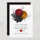 Vintage kopparorange, rött och svart blommigt gothic Halloween-temed bröllop spara datum inbjudan anpassade till dina specifikationer.