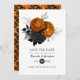 Vintage orange och svart blommigt gothic Halloween-temed bröllop spara datum inbjudan anpassade till dina specifikationer. Om namnen ser lite ocentrerat ut när du anger det, "Klicka för att anpassa ytterligare" (den blå länken grund i "Anpassa den här mallen") för att enkelt justera i designområdet.