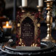 Gå in i en skrämmande elegant kväll med den här Gothic-katedralbågdesignen, glödande lyktor och krimson-blommigtar. En blandning av perfekter av ljus och vintage romantik är en stämning för ett oförglömligt Halloween-firande. Idealisk för dem som mörk i kärlek, mystiska och dramatiska party.