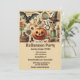 Den här inbjudan till Halloween fest som är designad i mörk har en vintage gotisk design, komplett med fladdermus, döskallar, Jack-O'-Lanternor och ljus, som ger ett förevändningsestetiskt utseende för halloween-festligheterna. Med den här anpassadet kan du enkelt redigera text och teckensnitt i färg till kostym som du vill använda. AI-bilden skapat av Susang6.