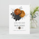 Vintage orange och svart blomster gotiskt Halloween-tema bröllop spara datum inbjudan anpassningsbar till dina specifikationer. Om dina namn ser lite osymmetriska ut när de skrivs in, "Klicka för att anpassa ytterligare" (den blå länken längst ned på "Anpassa denna mall") för att enkelt justera i designområdet.
