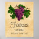 Denna eleganta väggposter är perfekt som bröllagspresent till brudens shower. Den har ett vintagekluster med druvor, nyfärgat och ljusare så att de kontrasterar fint mot den åldrande, lite fläckiga pergamentbakgrunden. Texten innehåller orden, "Favors / Please Take One", plus en vintage druvsnörning. All text kan ändras via mallarna eller genom att anpassa för att justera typsnitt och teckenstorlek. Alla element kan också ändras i storlek och ordnas om.