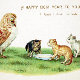 Vintage viktoriansk uggla och katter Nyårskort. Högkvalitativ, specialrestaurerad vintagebild från 1800-talet.