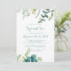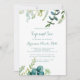Denna vintage gröna eukalyptus kalligrafi smaka och se inbjudan är perfekt för en rustik möta barnet-fest. Designen har handmålad akvarell grön, marinblad och blommor snyggt arrangerade i buketter.