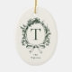 Vintage Grönt botaniskt monogram Julgransprydnad Keramik