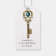 Vintage gotiska presentkort med en gammal nyckel präglad med en blå ädelsten och teal och guld marmor på baksidan.