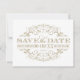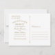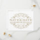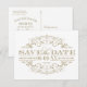 Denna vackert stiliserade "spara datum"-postkort har en ren vit bakgrund med antika förgyllda utsmyckningar i form av sirliga rullar i en invecklad filigranram. Den djärva typsnittet med seriffer visar parets namn och bröllopsdatum med tidlös elegans. All text är helt anpassningsbar och postkortets baksida, som kan skickas som ett vanligt postkort, har fält för adress. En klassisk och mångsidig design som passar perfekt till vilken brölloppsserie som helst med guld.