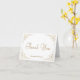 Det vintage-inspirerade bröllop-kortet i elegant har ett ornat gräns i guld blad på vit bakgrund. Anpassadet har ord "Tack" i skriptet guld-färgad och namn i briden och trimmen i serieteckensnitt.