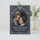 Ange tonen för ett mystiskt firande. Det tarotinspirerade bröllop-tacket-kortet har en tydlig cirkel ram med ditt foto omgivet av moln, måne och sol, med ett strålande öga överst. Designad i silver och marin för ett magiskt, oförglömligt vide! OBS! silver som visas i denna design är INTE äkta folie.