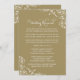 Unik bröllopsinbjudan till repetitionsmiddag med kreativt poem för att inbjuda bröllopspartiet till både repetitionen och middagen som följer. Eleganta skrifter och blomsterdekorationer accentuerar designen. Färgtema: vit och antikt guld