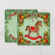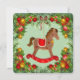 Vintage Gungande Häst Ornament Platt Kort. Foto och Text Redigerbar. Med Ljusgrön Bakgrund, Tallgrenar och Juldekorationer.