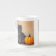Bone China Mugg med en svart kattunge av Halloween-typ. En förtjusande svart kattunge sitter bredvid en orange pumpa. Ett skämt för kattälskare och Halloween-entusiaster!