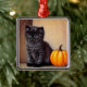 Ornament med en svartkattad illustration av Halloween. En förtjusande svart kattunge sitter bredvid en orange pumpa. Ett skämt för kattälskare och Halloween-entusiaster!