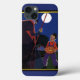 Vintage illustration Halloween-helgdag med en spooky häxa som håller en broompinne. Hon skrämmer ett litet barn som håller en skrämmande jack-o-iltern-pumpa. Ett fullt ligger i himlar på alla himmelska kväll.
