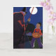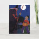 Vintage illustration Halloween-helgdag med en spooky häxa som håller en broompinne. Hon skrämmer ett litet barn som håller en skrämmande jack-o-iltern-pumpa. Ett fullt ligger i himlar på alla himmelska kväll.