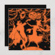 En söt, vintage, Halloween, svart och orange illustration, av en kvinna och en man, klädd som djävulen, och en häxa, med Jack av'Lantern och dekoration hängande överallt. Mycket enkelt och charmigt. Underbar för Halloween fest och för dem som kärlek vintage konst och färg svart och orange.