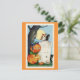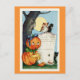Skicka Halloween hälsning till din familj och vänner med den här söta vintagen Halloween-vykort med en återillustration av en pumpa på en kyrkogård med djur som en svart katt, en uggla och en svart fågel!