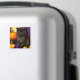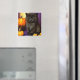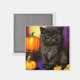 Magnet med en vintage Halloween Kitten! En flytande svart kattunge står bredvid pumpor mot lila bakgrund. En roligt för Halloween fest och kattälskare!