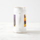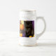Beer Stein med en vintage Halloween Kitten! En flytande svart kattunge står bredvid pumpor mot lila bakgrund. En roligt för Halloween fest och kattälskare!