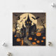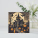 Vintage Halloween spökhus, pumpor, fladdermöss Julkort