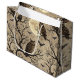 En hemlighetsfull elegant, sömlös Halloween-presentväska med detaljerat uggla, gick på grenar under ett glödande fullt måne. Mörk fladdermus går runt natten i himmel och skapar mystisk och jordnära skogsklimat. Bakgrunden för parchment-stil förbättrar vintagens estetik, skapar denna perfekt för Halloween och gothininspirerad décor. En tidlös blandning av natur, natt och Halloween charm.