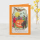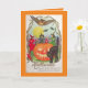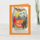 Vintage bild av en uggla och fladdermus, medan häxor dansar runt en leende pumpa och en svart katt, finns på detta hälsningskort från Halloween. Inuti kortet står det: "Ha en Happy halloween"! Ett sött kort som inte är läskigt att skicka till familjemedlemmar och vänner!
