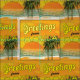Hälsning från Florida i stil i vintage Hälsning vykort med en illustration av en solnedgång över stranden med handflatan träd. Vivid retro färger och typsnitt tar oss tillbaka till Old Florida. Roligt till strandtorn!