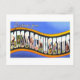 Det här vykortet är en återgivning av ett stort vykort för vintagen brev "hälsning från" från Massachusetts.