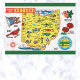Detta vykort har en vintage-illustration av en karta över Ohio och en kardinal. Det står "Hälsningar från Ohio". Foto: Hope More, 2023.