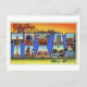 Det här vykortet är en reproduktion av ett gammalt stort vykort med "hälsningar från" från Texas.
