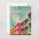 EXKLUSIV till Vintagen: Reseaffischaffisch för Retro stil Vår, som innehåller korkfulla balkonger på ett modernt hotell i mitten av århundradet (Sugaro Hotel) mot ett träd i blå himmel och handflatan.