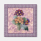 Söt vintage botaniska ämnen med bakgrund av nödlidande lila blommigt med lila och vitt Harlequin diamant mönster gräns lägger till en underbar trädgård inslag till varje tillbehör till bostaden