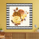Söt vintage gul ros botaniker på krämbakgrund med svart och vit Harlequin diamant mönster gräns lägger till en underbar trädgårdsträda inslag till vilken hemskår som helst