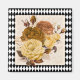 Söt vintage gul ros botaniker på krämbakgrund med svart och vit Harlequin diamant mönster gräns lägger till en underbar trädgårdsträda inslag till vilken hemskår som helst