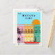Vem som helst skulle älska att få detta vintage kubanska rese vykort med en retro illustration av färgglada byggnader i Havanna, Kuba!