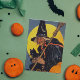 Vintage häxa med svart katt kort