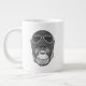 Den här konstruktionen har en porträtt av en schimpans med en vintage motorcykelhjälm och glimt.