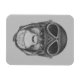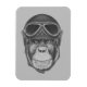 Den här konstruktionen har en porträtt i en schimpans som bär en vintage motorcykelhjälm och glimt.